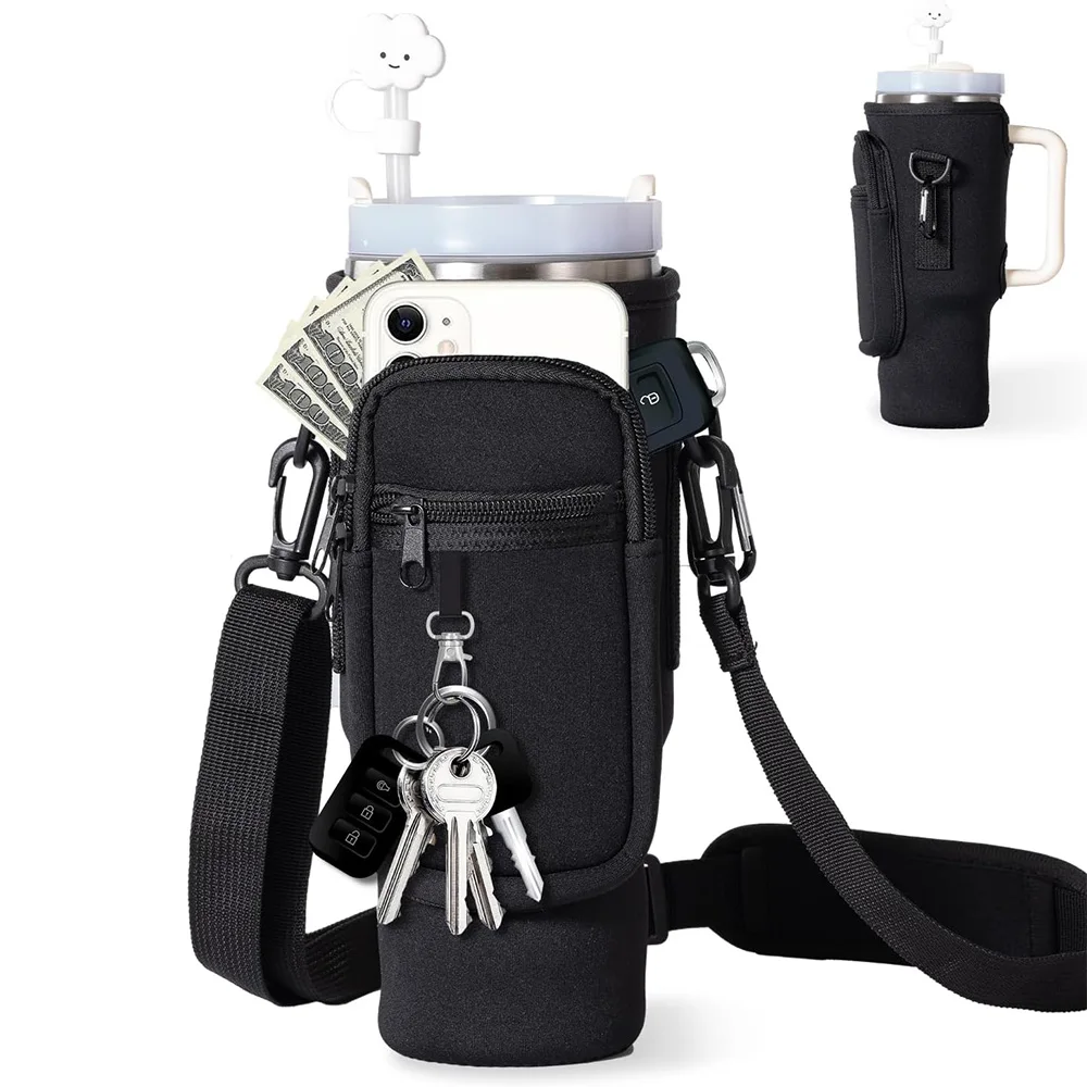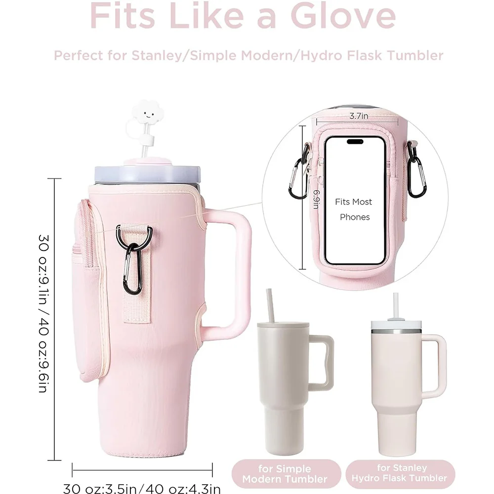 Aiylo Water Bottle Carrier Bag with Phone Pocket for Stanley 40/30 oz Water Bottle Holder Pouch with Straw Cover